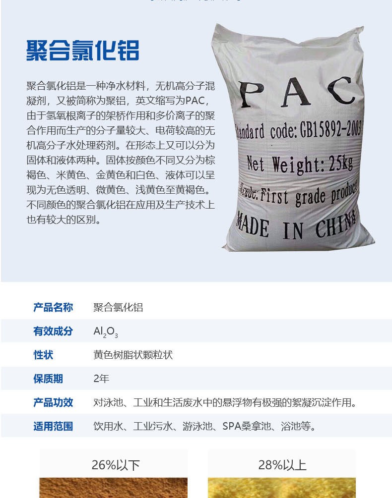 利用雙電層聚合氯化鋁加速沉淀 高分子物質(zhì),在吸附架橋形成的更長(zhǎng)的污染物鏈條物質(zhì),利于沉淀,這類(lèi)化學(xué)藥劑的吸附架橋作用對(duì)水中的細(xì)微懸浮顆粒進(jìn)一步捕捉,無(wú)機(jī)鹽混凝劑聚合氯化鋁PAC對(duì)水中的膠體和細(xì)微的懸浮顆粒進(jìn)行有效的去除。